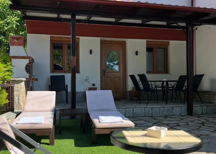 La Villa del Vino|Villa del Vino cuenta con una cocina completa, una zona de comedor y un comedor al aire libre para mayor comodidad de los huéspedes. En la cocina también hay hervidor eléctrico, nevera y cristalería. Ofreciendo platos grecques, el restaurante Kazaviti Restaurant es una de las opciones para comer, situado a tan solo 13 minutos a pie. El aeropuerto internacional de Kavala está situado a 45 km del establecimiento.